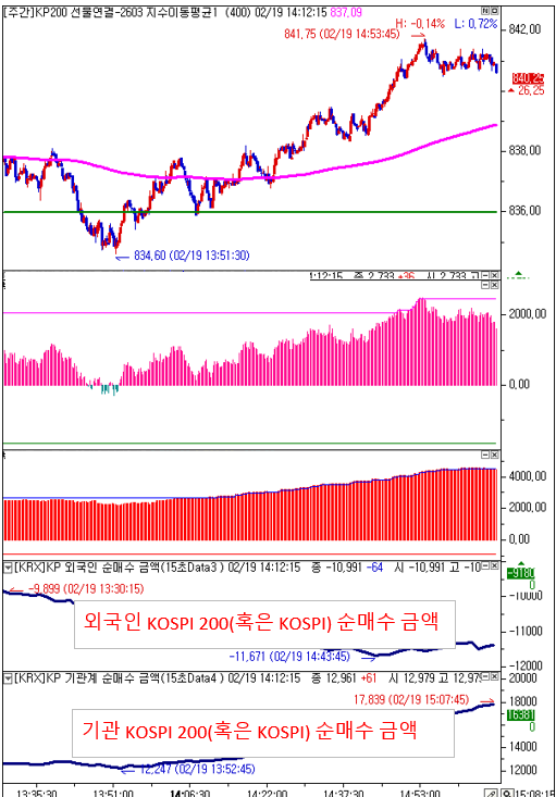 외국인/기관 KOSPI 200(혹은 KOSPI) 순매수 금액 지표 추가