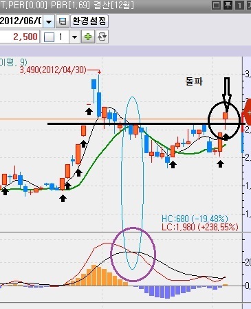 밑에 동그라미 친부분이 macd데드난날이고이고 검은색동그라미 양봉으로
