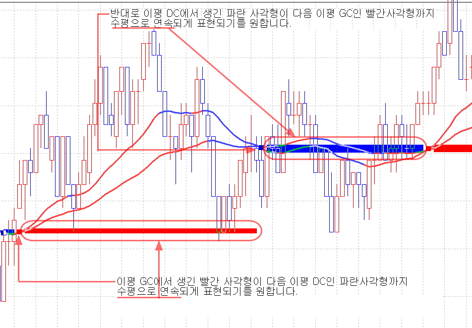 그림에서 처럼 두개의 이평선이 서로 교차할때