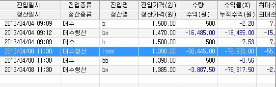 우수ams 3분봉에서 4월4일 다음 시스템을 실행했습니다.