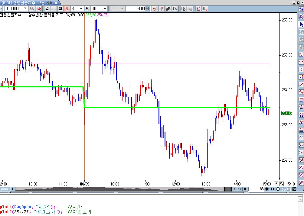 전일과 당일 간에 수평선으로 이어지는 선입니다.