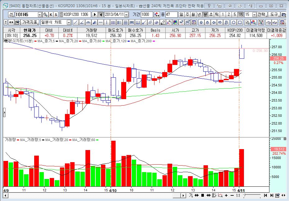 죄송하지만 다른 증권사의 시가라인의 이미지를 올려 드립니다.