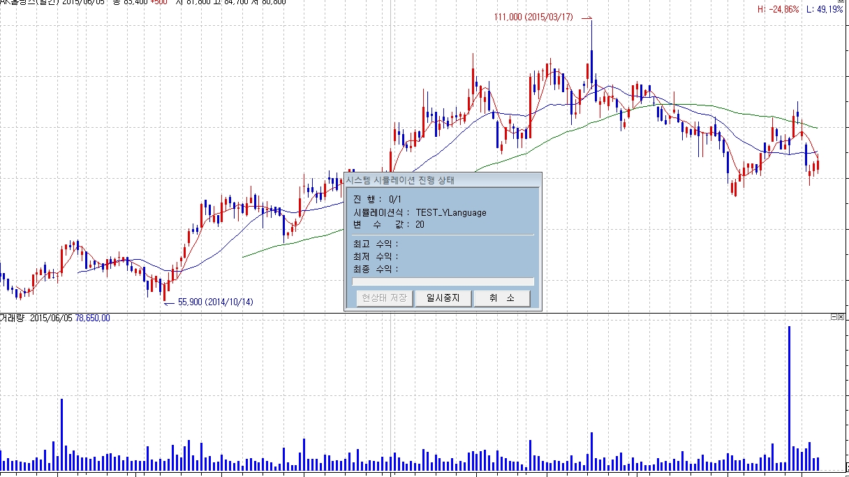 시뮬레이션차트에 시스템 적용시 항상 뜨는 화면입니다.