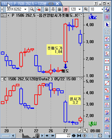 주챠트는 풋262.5, data2는 콜262.5 120분 입니다