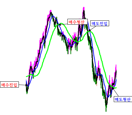매도청산 : 5이평이 60일 이평을 골든크로스나면 매도청산