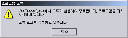 [예스트레이더 프로]사용시 프로그램 오류 메시지가 나오는 경우 [예스트레이더 프로]폴더내에 "YesTrader2.LOG"파일과 해당 그룹을 메일로 보내주시기 바랍니다.