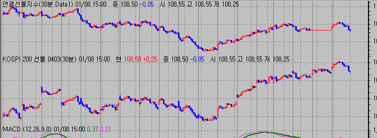그림에서 보는 바와같이 갭보정 차트 봉에서 전일 끝부분에 여전히 오류가 나오고 있습니다. 20분, 30분봉입니다.