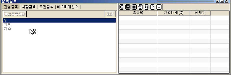 관심종목을 클릭하면 커서가 모래시계로 변하고 조회가 안 됩니다.