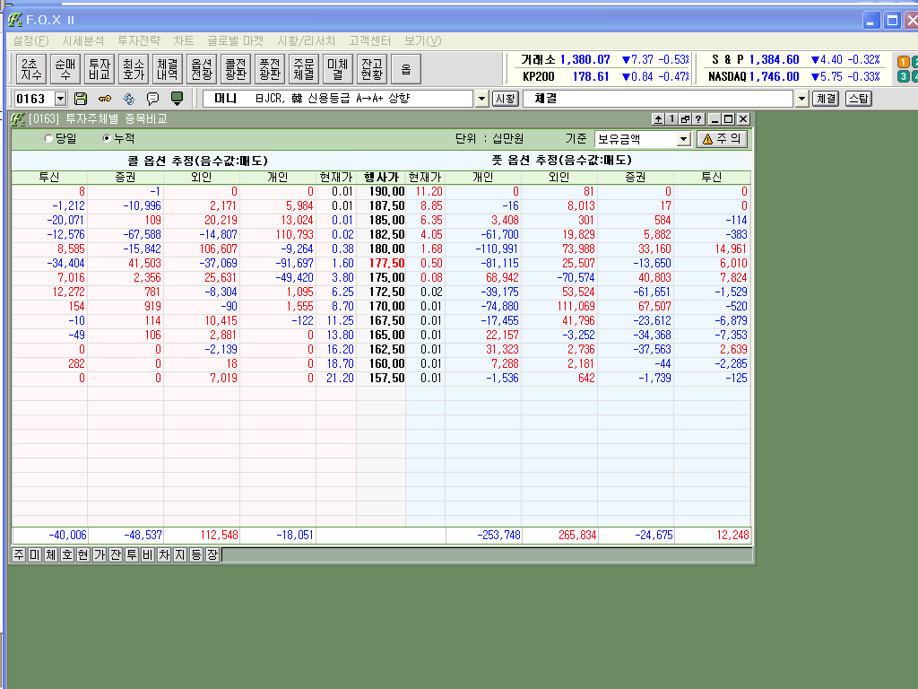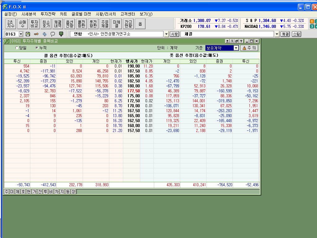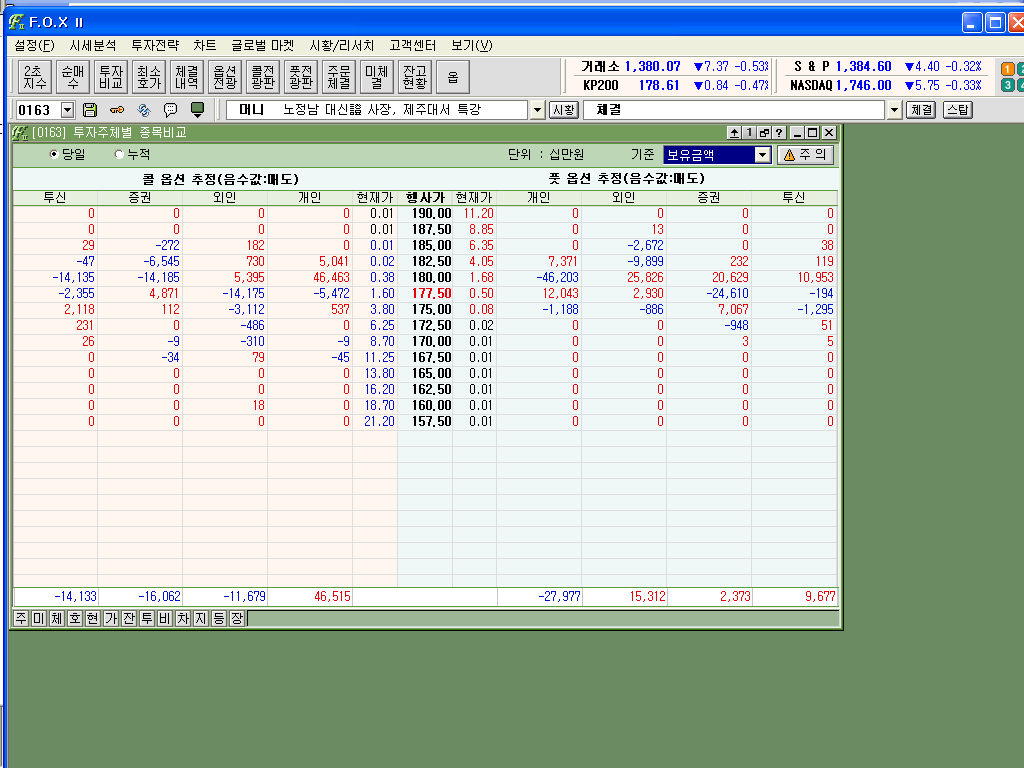 요즘 대부분의 홈트가 그림과같은 옵션월물별 투자주체 동향을 제공해주는데