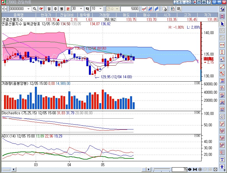 그림을 보시면 같은 연결선물의 120틱 차트 인데