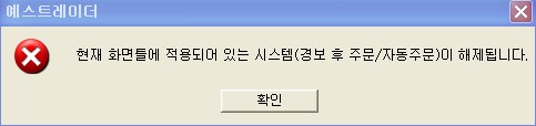 자동주문이 걸려있음을 알려주고, 프로그램을 종료하면 자동주문이 종료된다는 것을 알려드리는 메시지창이며 말씀하신 것처럼 에러 메세지는 아닙니다.