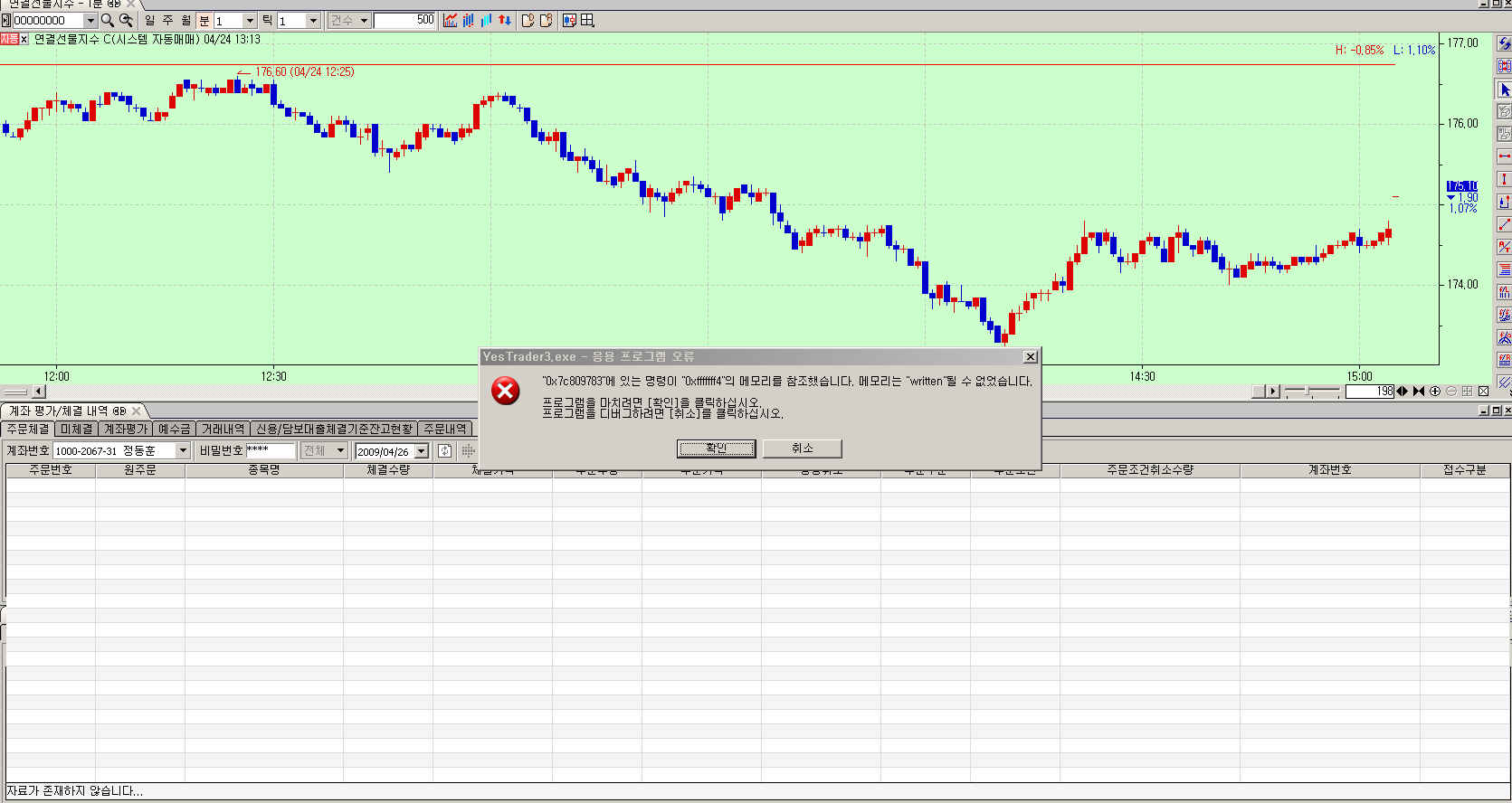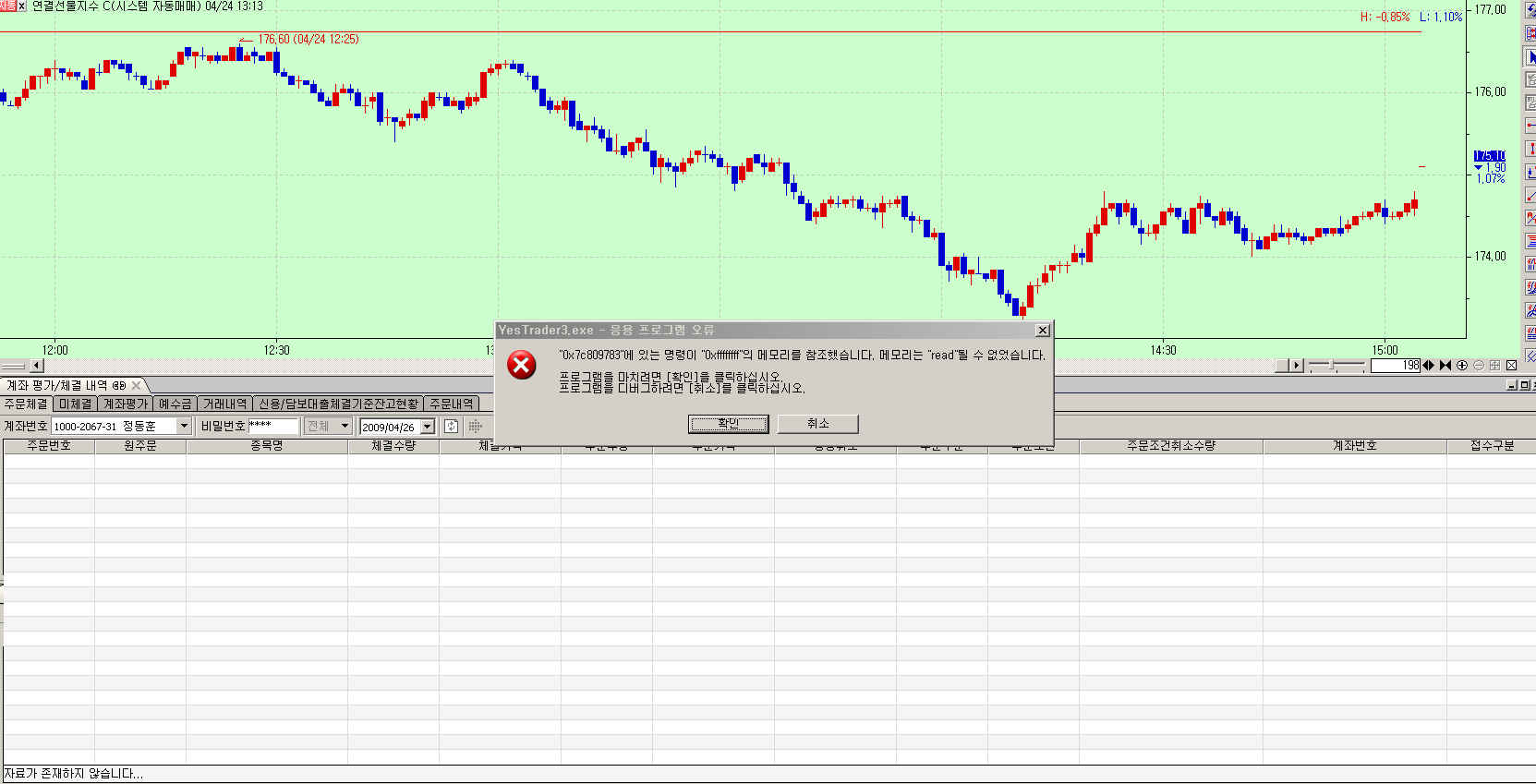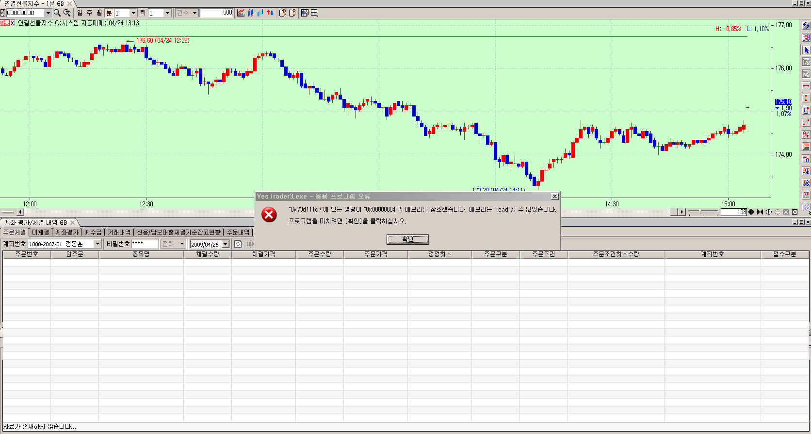 > 2번현상인 계좌가 두개띄는 것과 3번현상인 에러메세지는 모의투자뿐만 아니라 예스트레이더3.1버전에서 나타나는 현상입니다.