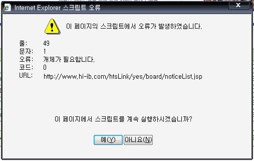 공지사항 스크립트 에러 납니다. 수정 바랍니다. 이미지 첨부 합니다.