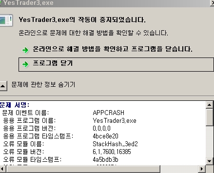 번거로우시겠지만, 로그파일을 메일로 부탁드리겠습니다. (webmaster@yesstock.com)
