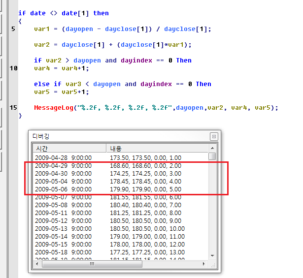 2009-04-30 9:00:00 174.25 ....... 3.00 <-- 중복 계산 안됨