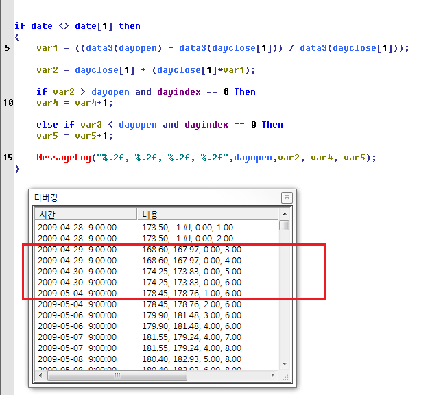 2009-04-29 9:00:00 168.60 ....... 4.00 <-- 중복계산