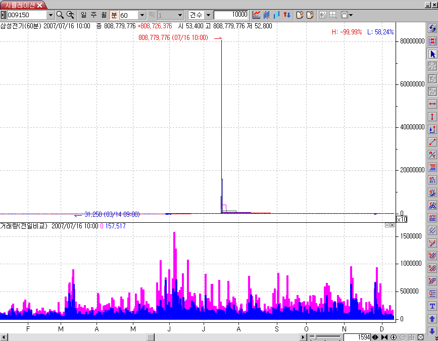 삼성전기 분차트상에서 이상하게 나오는데 첨부봐주세요,, 2007.7.16일이 이상해요