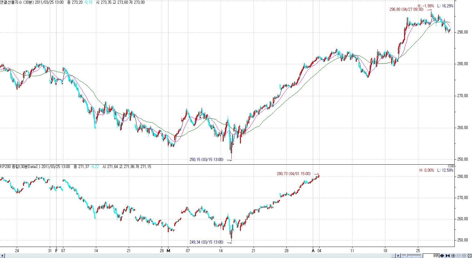 안녕하세요? 예스스탁입니다. 참조종목을 삭제한 이후에 다시 적용해 보시면 정상적으로 나올것으로 판단됩니다. 감사합니다. > 닭고기 님이 쓴 글입니다. > 제목 : data2에서 K200 분봉이 표시되지 않아요! > 저만 그런건가요?