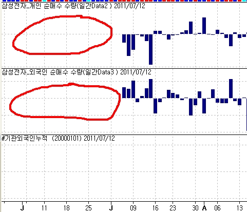 예스스탁에서 개별 종목의 주체별 데이터를 누적하기 시작한 시점이 2007년 1월부터이기 때문에 이시점 이후의 날짜로 누적시작일을 설정해 놓고 적용하셔야 합니다. 그 이전 일자로 적용할 경우 데이타가 없어서 그시점과 그 이후의 값도 출력하지 못합니다.