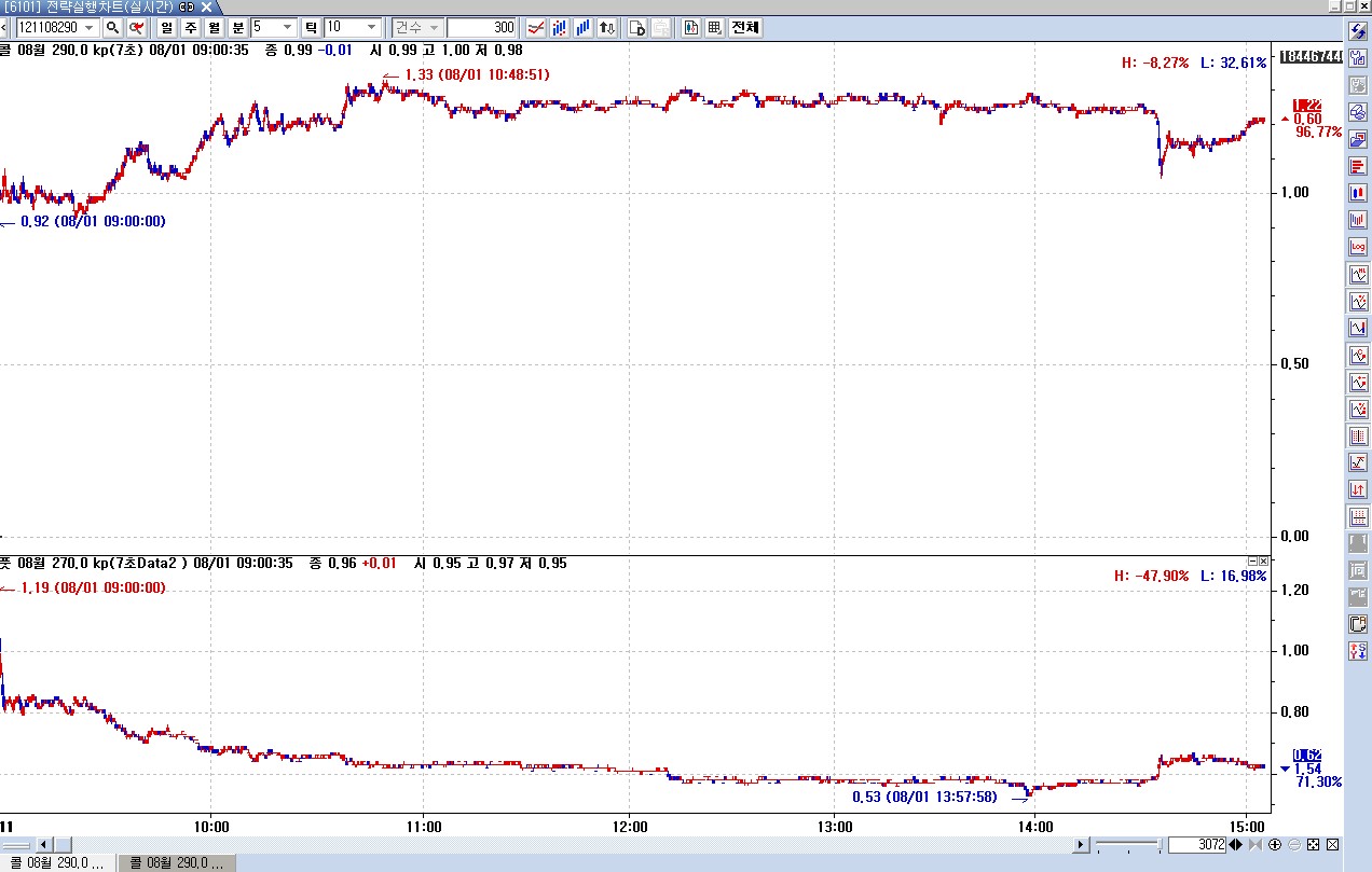 리딩스타도 우리트레이더와 마찬가지로 당일분 챠트만 나옵니다,