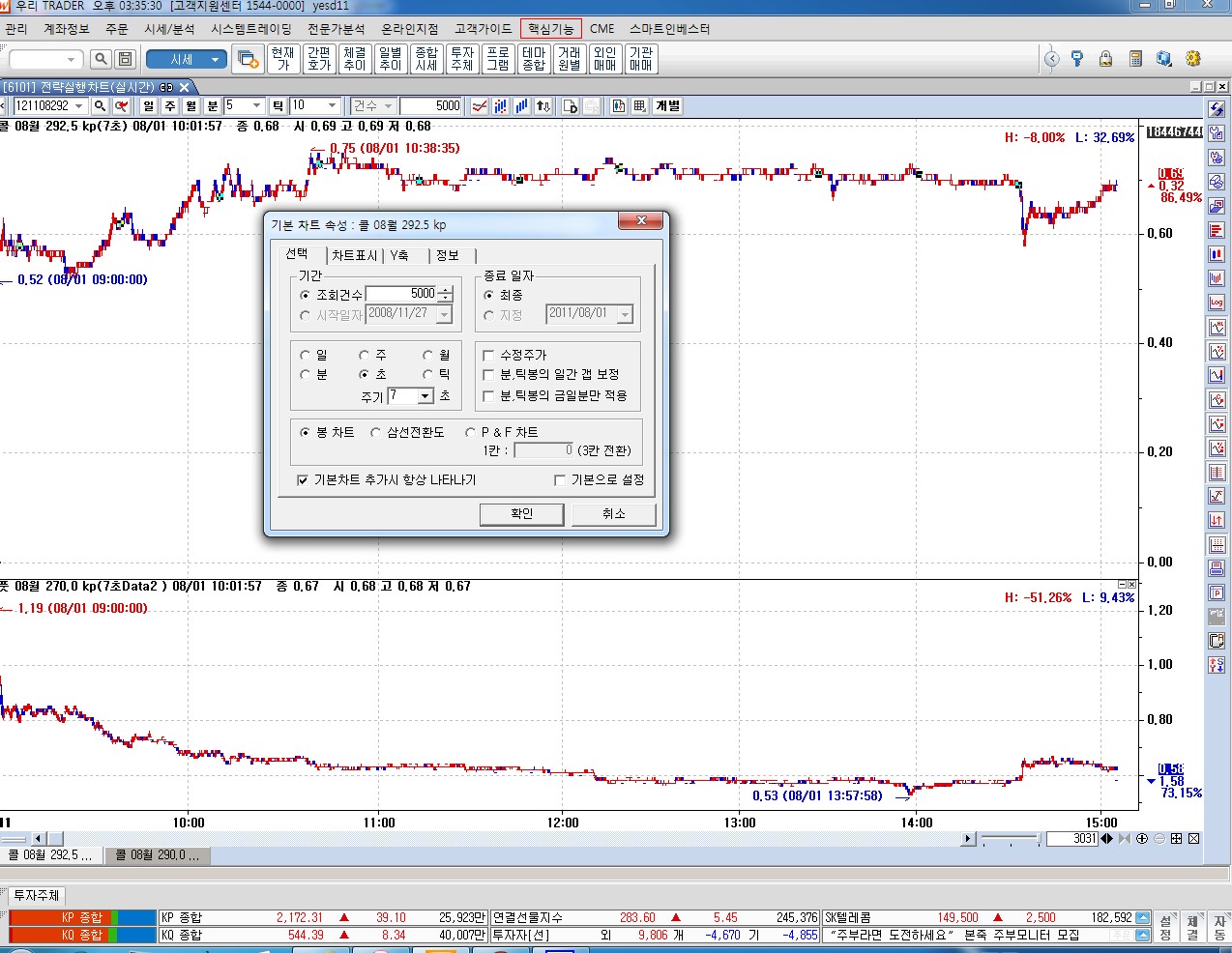 올려주신 내용을 보고 다시 확인해 보고 있는데, 8초 미만의 봉에서 말씀하신 현상이 나타나고 있음을 확인하였습니다.
