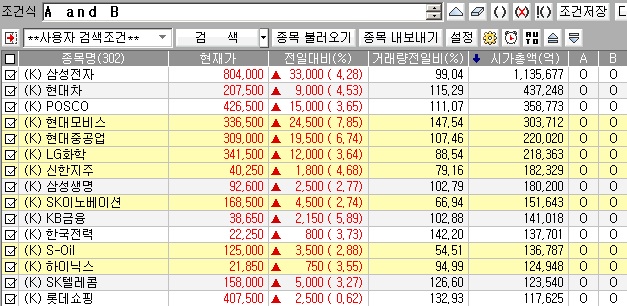 종목검색 같은 경우도 다중 조건으로 검색할시