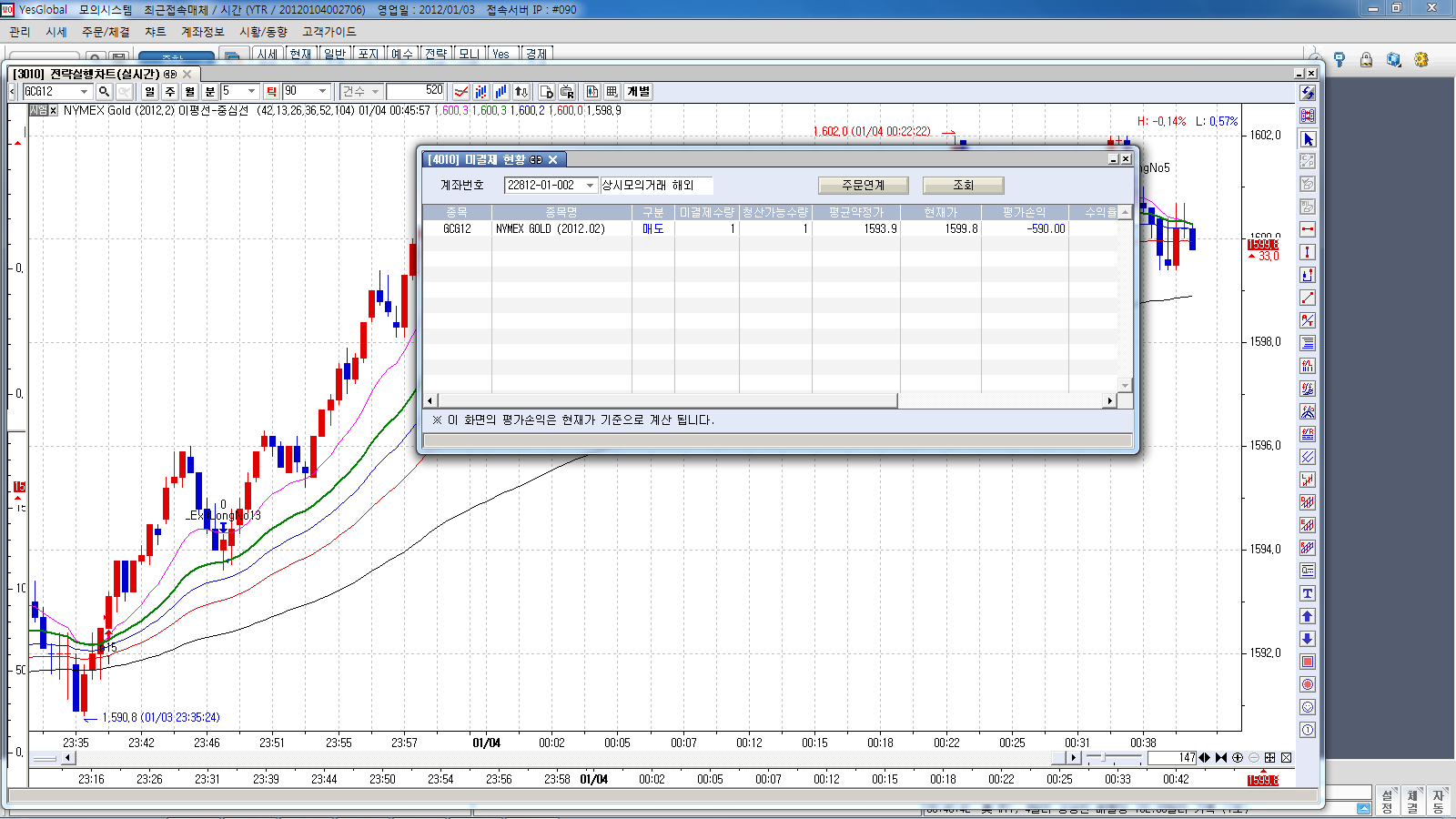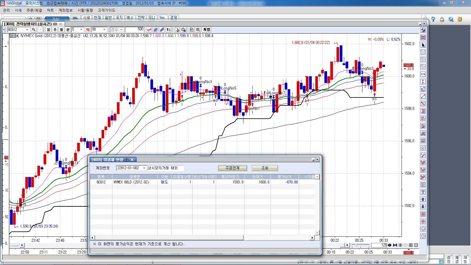 > 예스글로벌이고 어제 금선물로 테스트하던중에 발생한 일입니다.