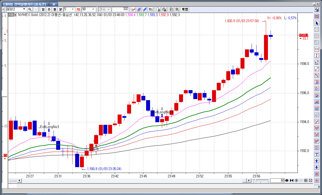 봉이 잘 안쪼개지는지라 화면 다시 불러오다가 23시 36분경에 간발의 차이로