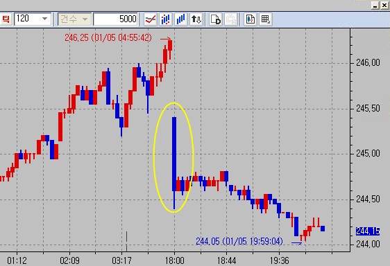 > 제목 : 틱챠트 첫봉이 왜 이렇는지 궁금합니다.
