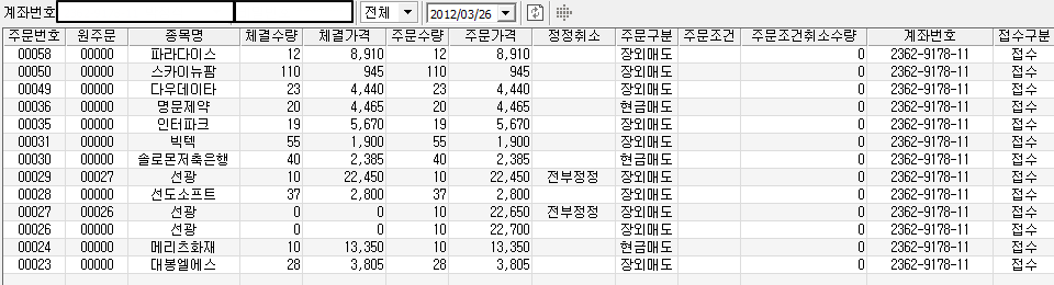 그래서 주문체결에 체결가격을 확인해보면서 계산을 해봐도