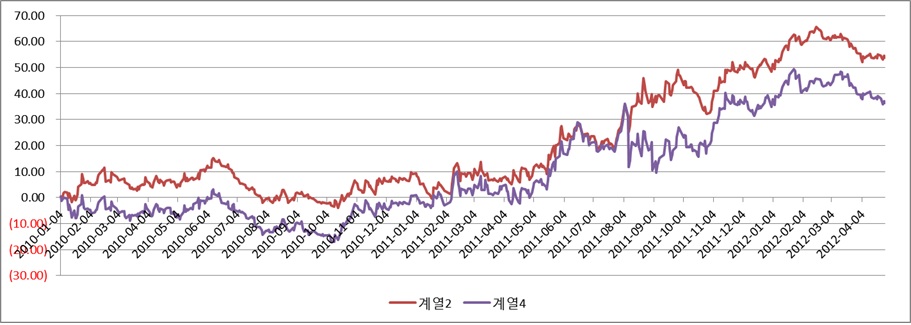 이것을 엑셀에 plotting 해보니 첨부된 파일처럼 나타났습니다.