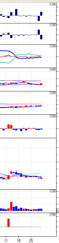 첨부 이미지는 상하폭을 맞추어 놓았던 보조지표들이 새 지표를 하나 추가했더니 기본값으로 되돌아간 상태입니다.