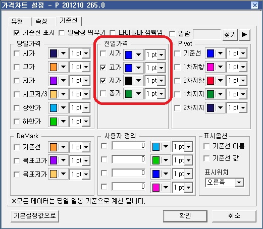 수식으로 전일 시/고/저 같은걸 적용시키면 차트가눌려서 제대로나오질않습니다.