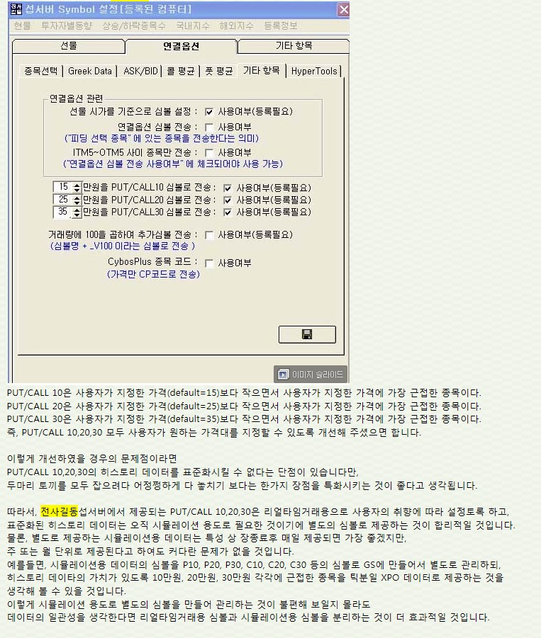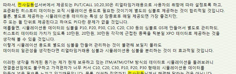 당일 선물시가 기준으로 편성하고, 실매매자를 위한 옵션의 선정기준을 만들어 주시면 좋겠습니다.