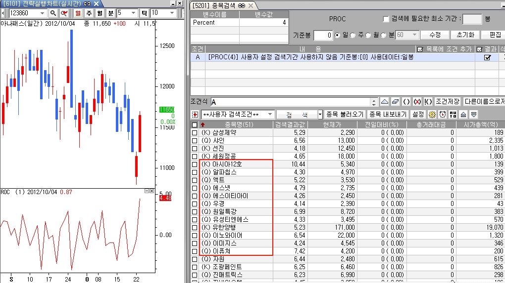 스크린샷에 사용된 종목 검색식은 다음과 같습니다.