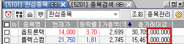 > 제목 : 관심종목[5101], 종목검색[5102]에서 총거래대금 항목