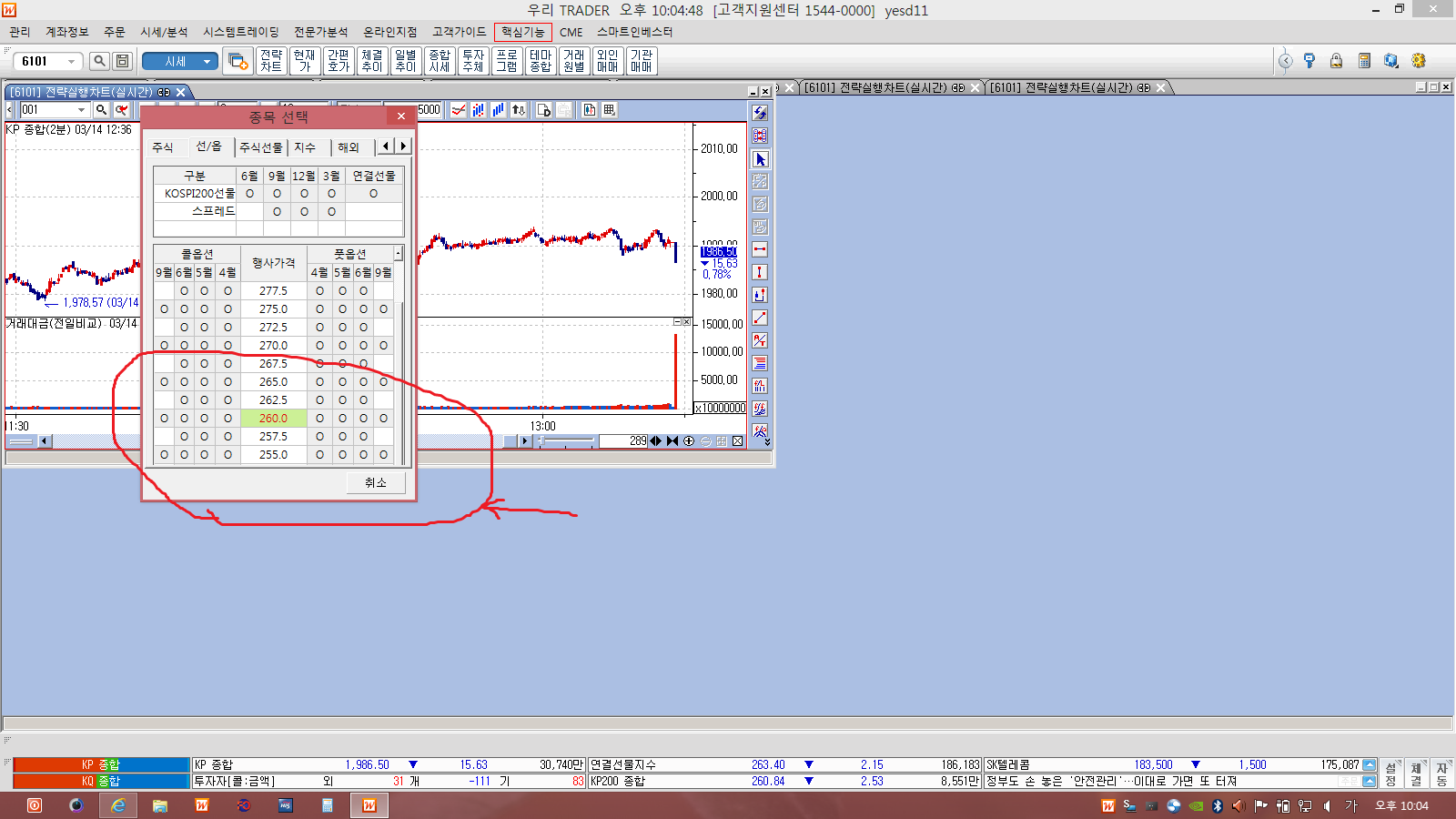 챠트 화면이나 선물/옵션 포트폴리오 화면에서