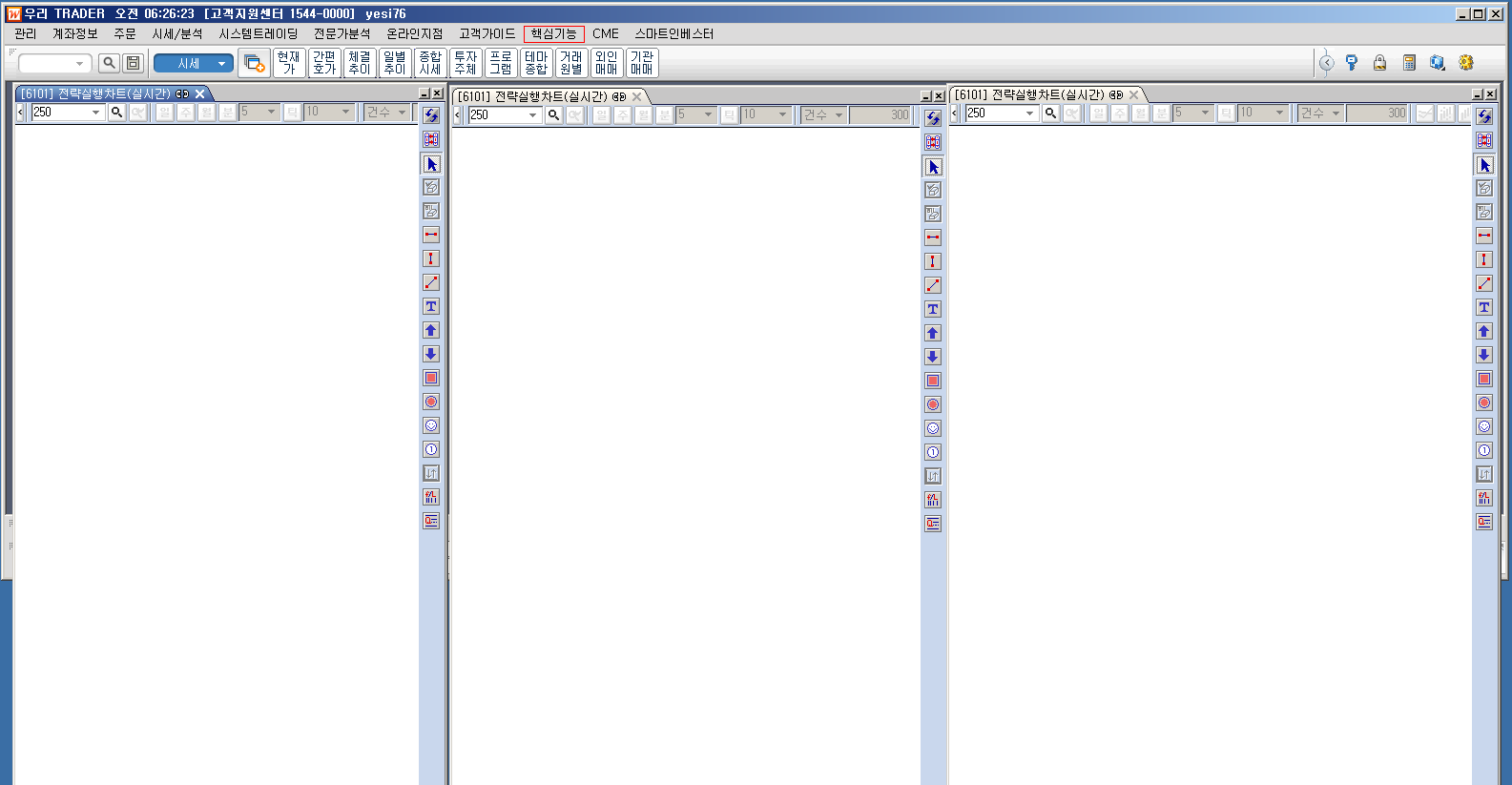 해당 현상이 계속 나타난다면 번거로우시겠지만, 예스스탁(02-3453-1060:프로그램사용법Q&A담당자)으로 연락을 부탁드리겠습니다.