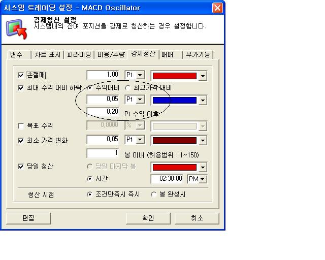 그림2에서 보시듯이 0.20수익후 최대수익대비 한틱이 떨어지면 바로 청산하게 설정했읍니다
