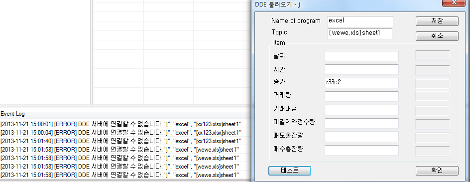 첨부한 파일과 같이 엑셀과 예스트레이더를 dde연결하려하는데 왜안돼죠???