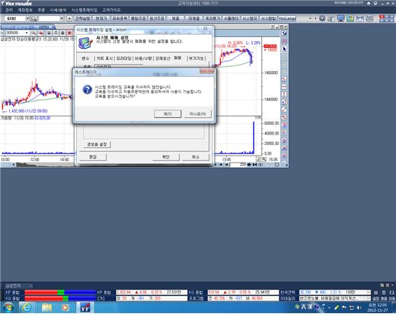 전략실행에서 자동주문을 체크하면 그림1과 같은 메세지가 떠서