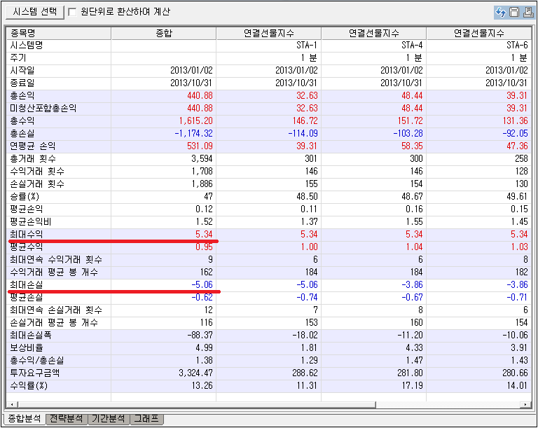 (현재의 최대수익,최대손실은 그대로 유지하고, 별도 항목으로 분류하셔도 좋습니다...