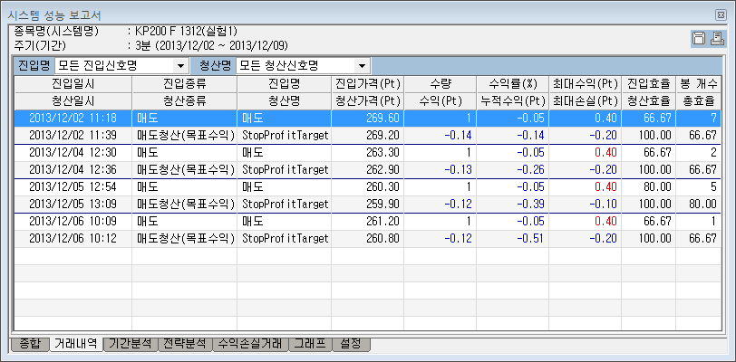 이익으로 청산된 걸로 보여지는 모든 거래들이