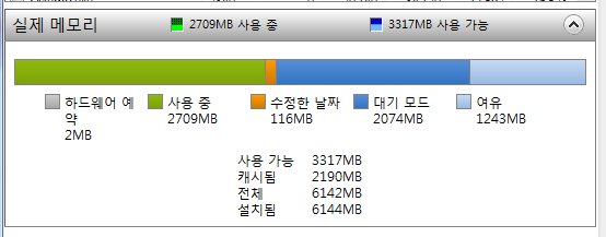 과연 메모리가 부족한지 사용현황을 조사했더니 아래와 같더군요