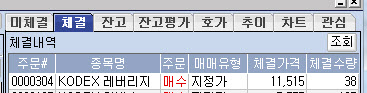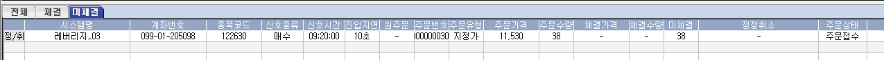 그런데 첨부한 그림과 같이 주문이 발생하면 시스템모니터에서는 미체결로 표현이 되는데 기본주문창으로 가서 확인하면 첨부한 그림과 같이 정상적으로 주문체결이 되었습니다.