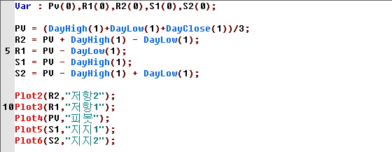 아래는 기본제공되는 피봇지표식입니다.