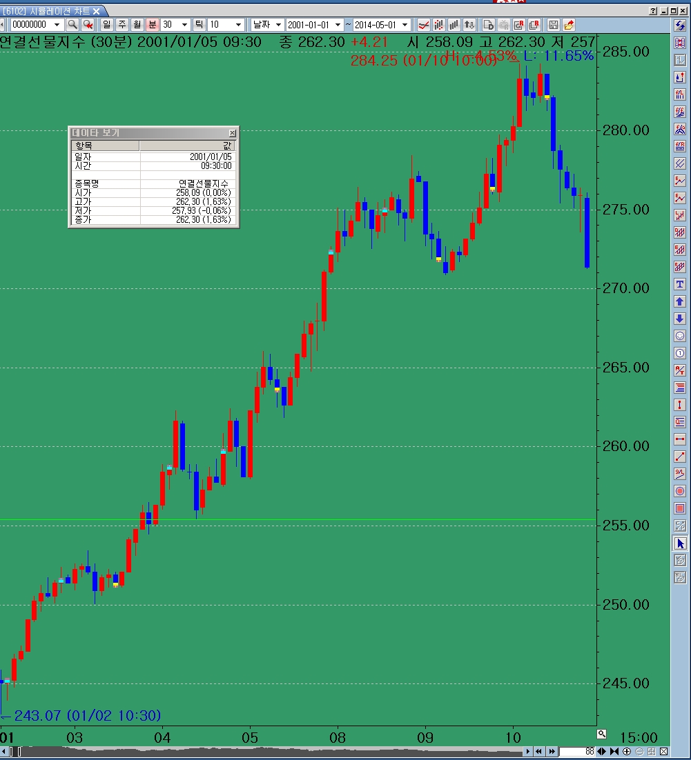 > 시뮬레이션 차트에서 수정주가 갭보정 으로 차트를 볼때...
