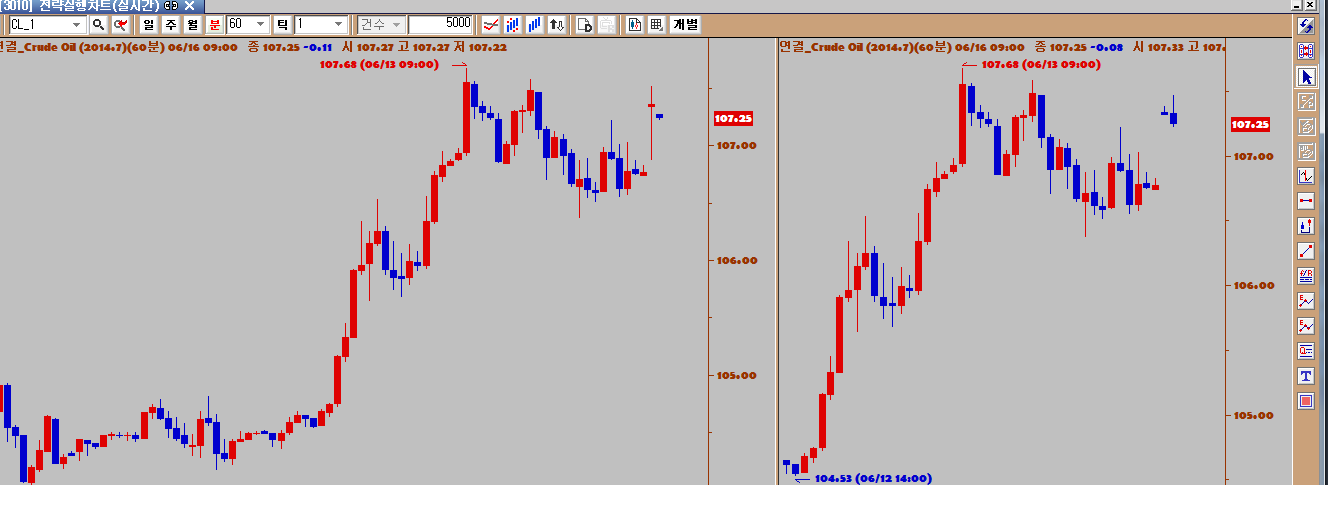 같은 종목 같은 분봉차트를 띠워 봤습니다 같은 종목 같은 조건의 분봉