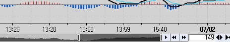 분차트와 틱차트는 서로 만들어지는 주기가 다르므로 X축의 시간표시도 서로 다르게 나올 것입니다. 그리고 현재 진행되는 봉의 시간표시가 서로 다르게 나온다면 그것은 봉의 끝시간 기준으로 차트가 설정되어 있기 때문입니다. 분봉차트에서는 끝시간을 알 수 있으므로 봉의 마지막 시간을 표시하지만, 틱봉에서는 봉이 언제 완성될 지 알 수 없으므로 완성되지 않은 봉에서는 임의로 17시의 시간을 끝시간으로 표시합니다.