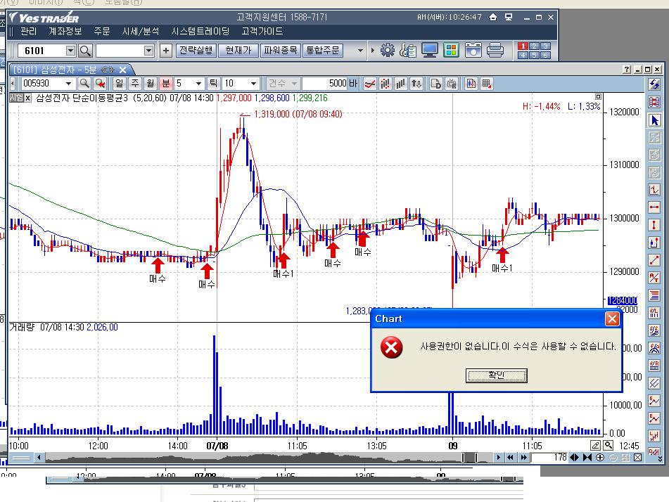 다른것(적색다음신호)는사용자 권한이 없다고 나옵니다.